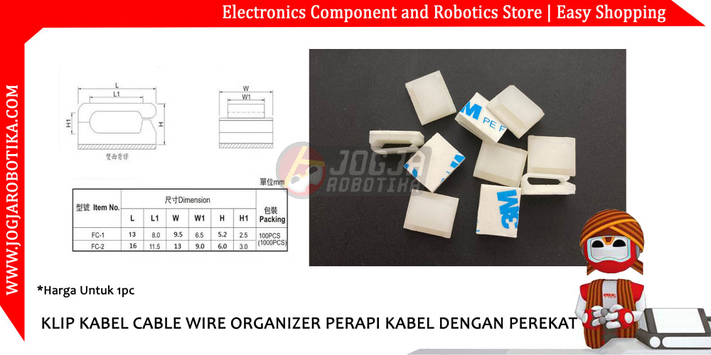 FC-2 KLIP KABEL CABLE WIRE ORGANIZER PERAPI KABEL DENGAN PEREKAT - PUTIH
