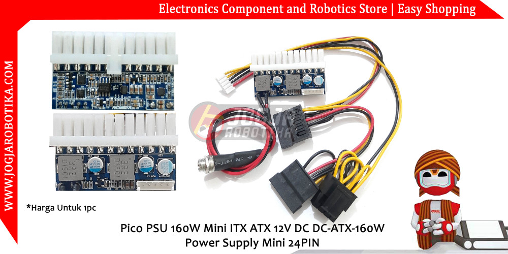 Power supply converter kecil untuk komputer mini, hemat tempat. Sumber listrik menggunakan adaptor 12V