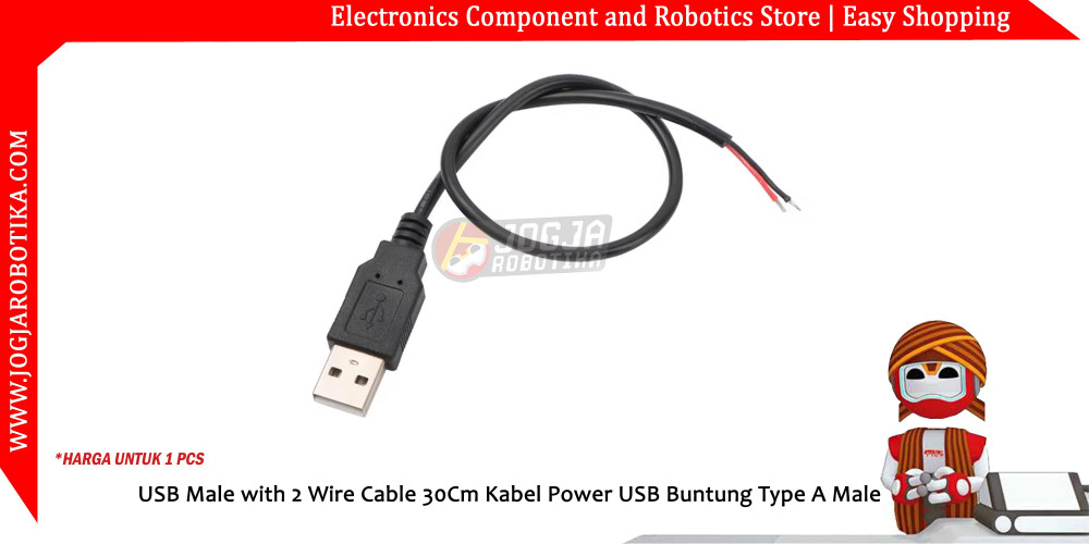 USB Male with 2 Wire Cable 30Cm Kabel Power USB Buntung Type A Male