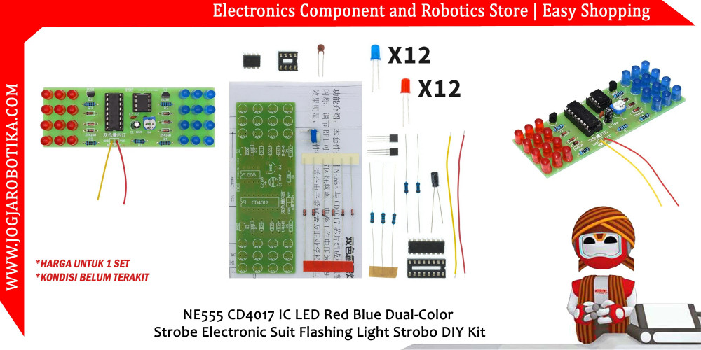 NE555 CD4017 IC LED Red Blue Dual-Color Strobe Electronic Suit Flashing Light Strobo DIY Kit